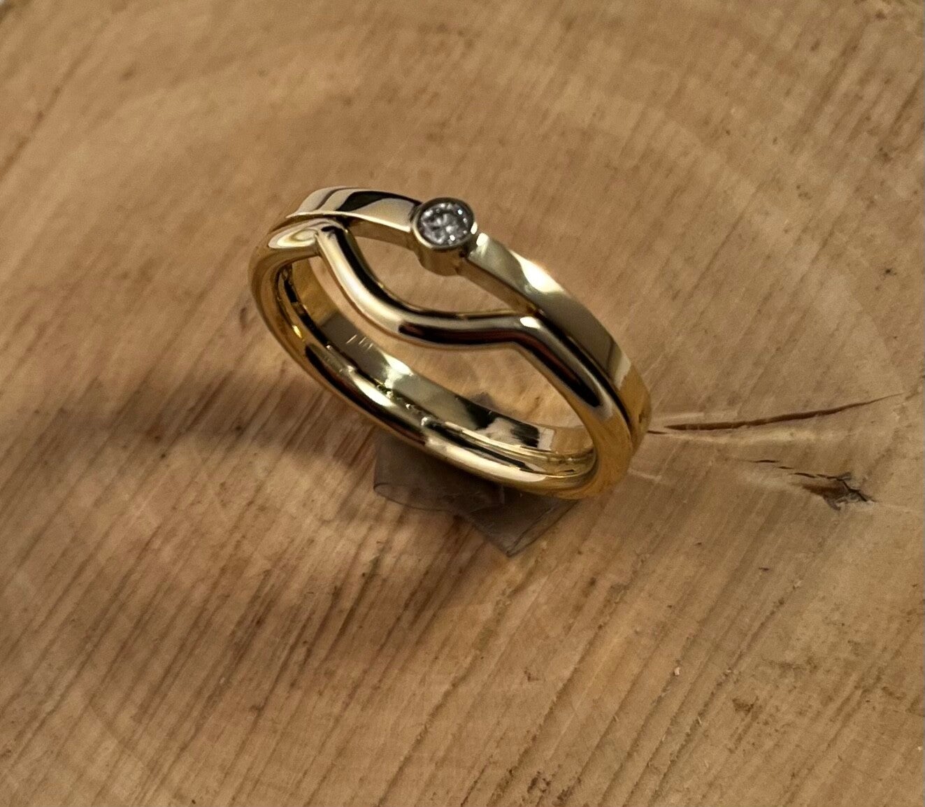 Met hangers kan ik ook alle kanten op, van heel strak tot iets meer organisch. De hanger kan van geheel zilver met een element geelgoud gemaakt worden, of geheel in het zilver of goud. Stenen kunnen toegevoegd worden en die zijn er ook in allerlei kleuren en slijpvormen.